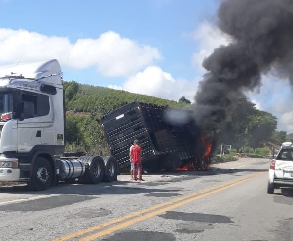 Na manhã desta quarta-feira (17), um caminhão que transportava bois pegou fogo na BR-381, próximo à entrada de Pedra Corrida, distrito de Periquito, na região do Leste de Minas Gerais.