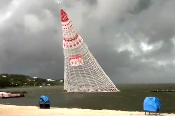 Uma árvore de Natal flutuante desabou e provocou a morte de um trabalhador e ferimentos em outros dois na tarde desta segunda-feira (16), em Maricá, na região Metropolitana do Rio de Janeiro. O acidente aconteceu durante uma forte tempestade, que trouxe ventos intensos e chuva pesada. A estrutura, que estava posicionada sobre as águas da Lagoa de Araçatiba, passava por ajustes no momento da tragédia.