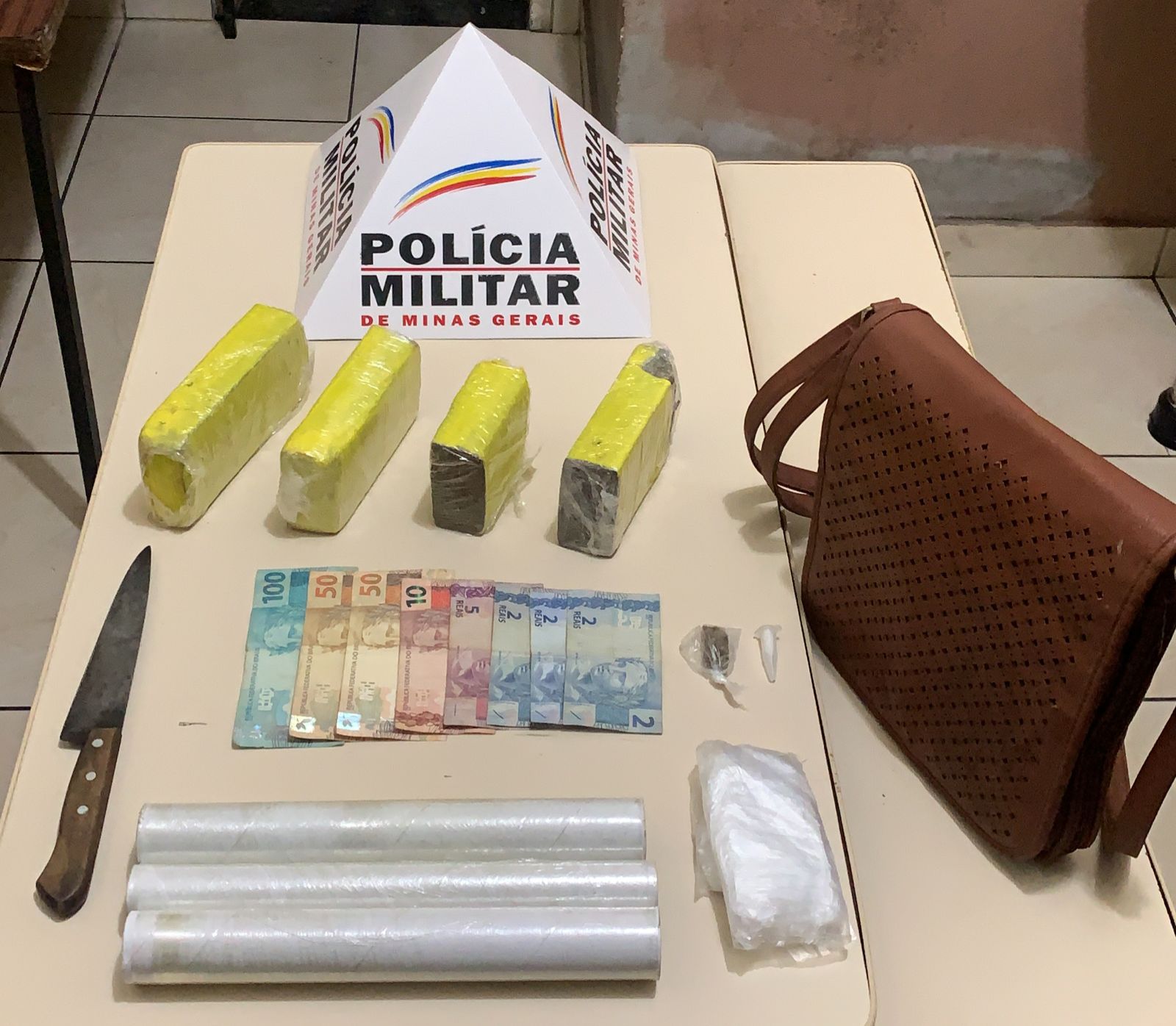 Na ação, os policiais localizaram drogas em uma bolsa. Ao todo, foram apreendidos uma bucha e quatro barras de maconha; pesando aproximadamente 1,5 quilos; um pino de cocaína; R$ 221; uma bolsa e vários materiais que seriam para embalar a maconha.