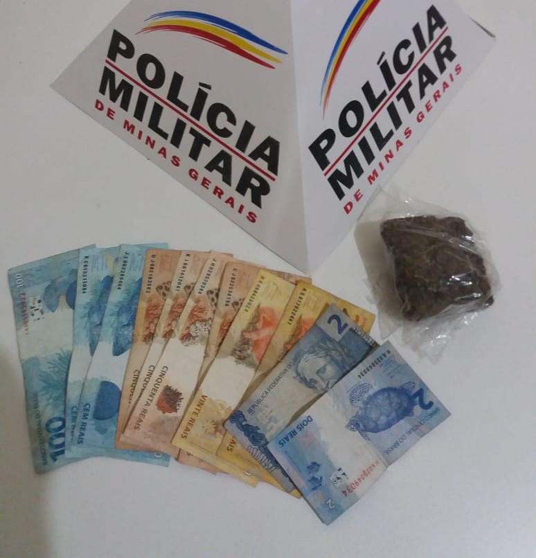 O jovem foi abordado e, ao verificar o que tinha sido arremessado, os policiais constataram se tratar de um tablete de maconha. constatamos ser um tablete de maconha. Após buscas, os policiais localizaram R$ 544.