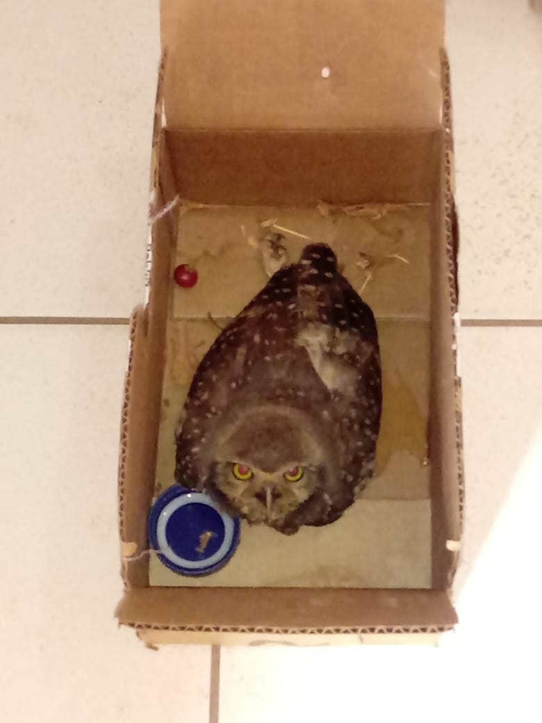 Moradores próximos ao local encontram a coruja ferida próximo a via pública. De acordo com os militares, uma guarnição de salvamento foi acionada e efetuaram a captura do animal.