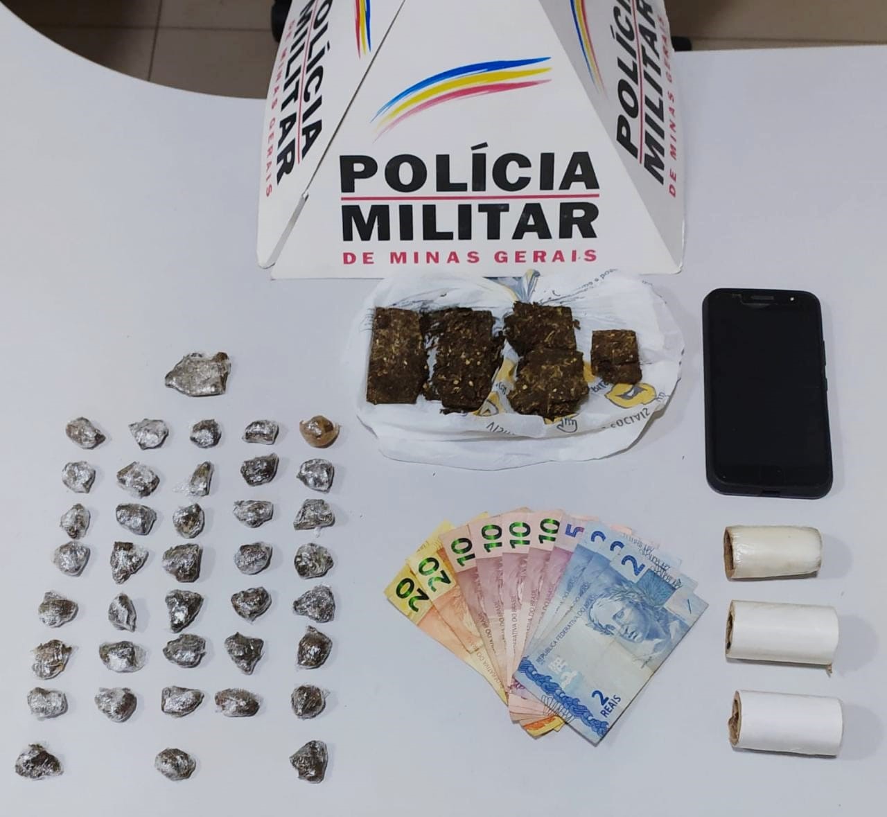 As equipes se deslocaram para o endereço denunciado e monitoraram uma residência. De acordo com os militares, durante abordagem e buscas no imóvel foram encontrados cinco tabletes e 39 buchas de maconha, um celular, rolos de plástico, R$ 91 em espécie e várias sacolas.