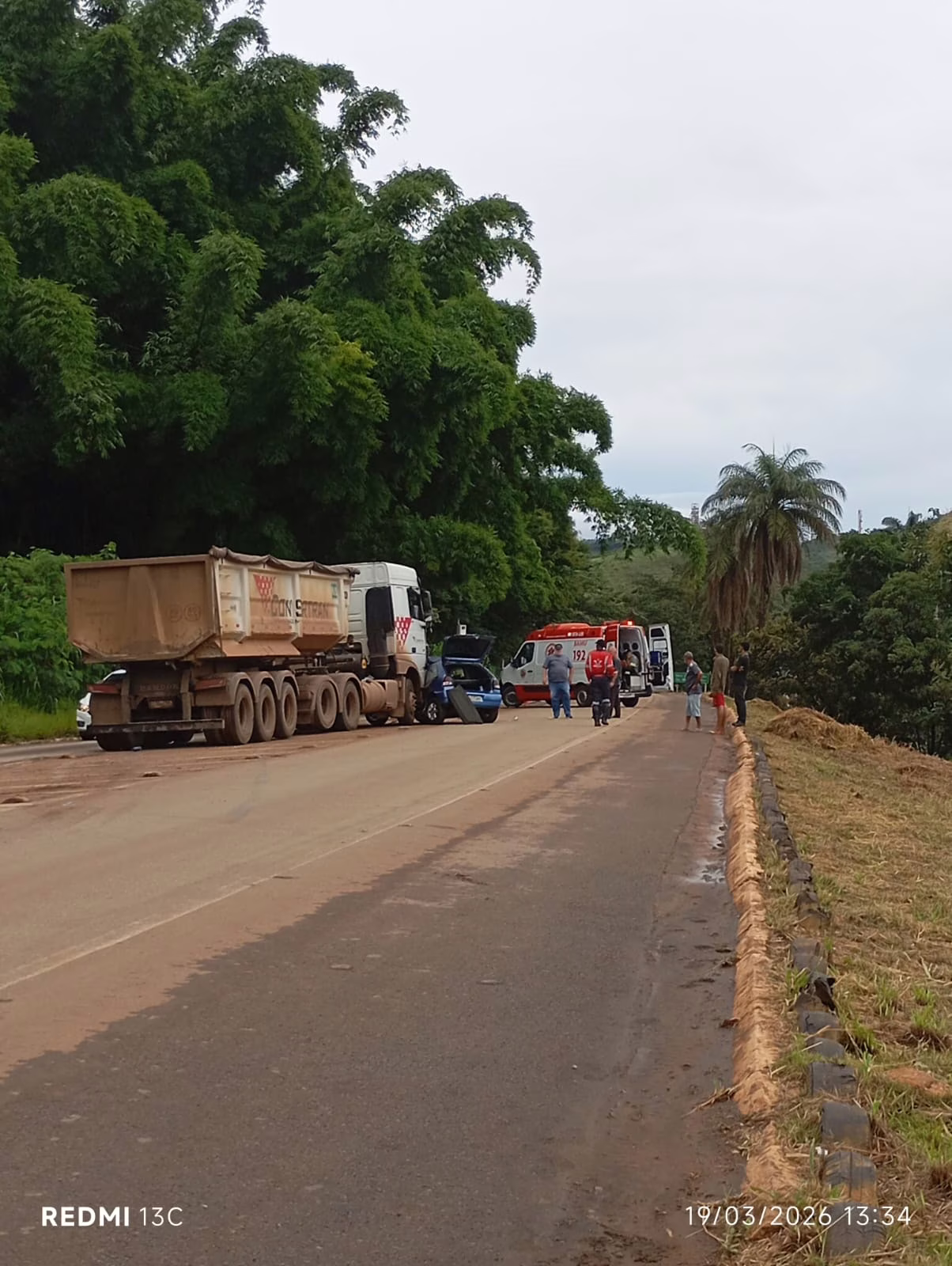 Uma câmera de monitoramento registrou o momento da batida entre uma carreta e um carro de passeio na rodovia MG-436, em Barão de Cocais, na tarde desta quinta-feira (19). O acidente, considerado grave, deixou três pessoas feridas.