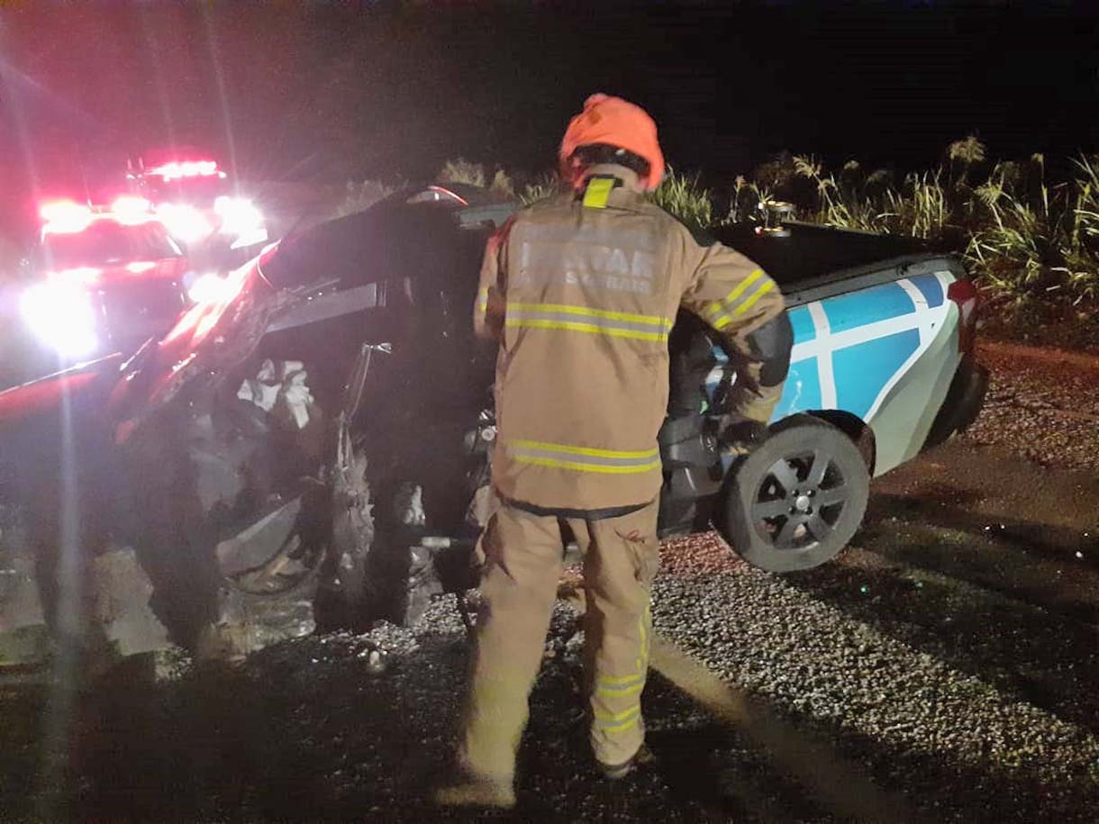 As vítimas foram localizadas: uma delas estava consciente e orientada fora do veículo, recusou atendimento e permaneceu no local. A outra vítima, em óbito, ficou presa às ferragens do automóvel.