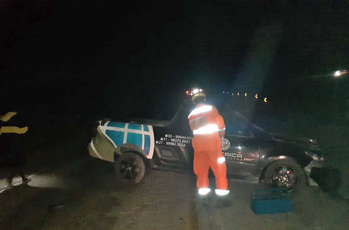 Ao chegar ao local, a equipe de resgate encontrou o caminhão parado no acostamento, na contramão de direção, com a roda dianteira esquerda avariada. O veículo de passeio estava atravessado na pista de rolamento com a frente destruída, a cerca de 70 metros de distância do caminhão.