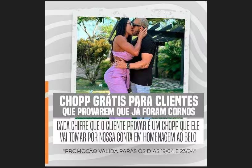 O bar ainda não esclareceu detalhes sobre como os interessados podem validar suas experiências de traição para ganhar o chopp gratuito.