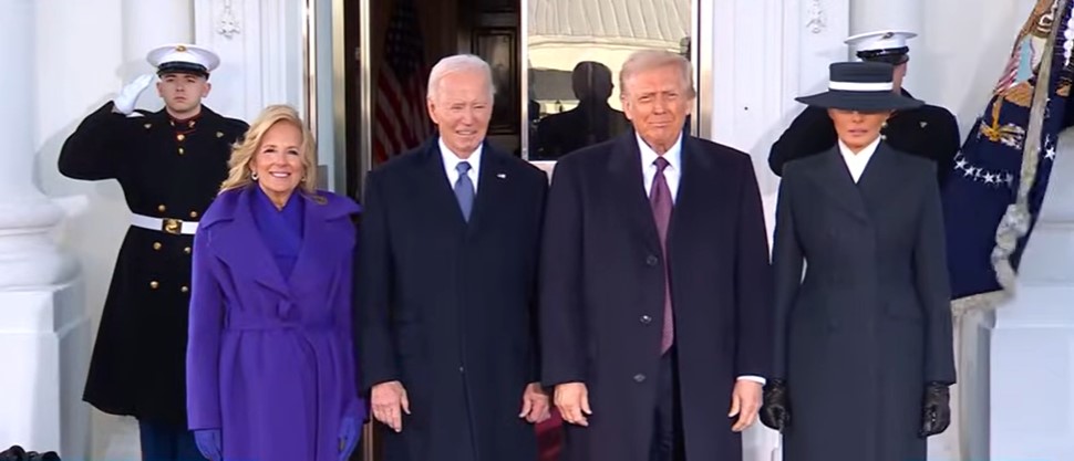 Donald Trump, acompanhado da esposa, Melania, foi recebido por Joe e Jill Biden para um chá na Casa Branca nesta segunda-feira (20), horas antes de assumir a presidência dos Estados Unidos. Durante o encontro, Biden deu as boas-vindas ao republicano com uma declaração simbólica: “Bem-vindo de volta à Casa Branca”.