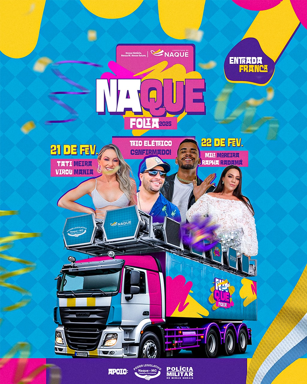 A cidade de Naque se prepara para reviver a energia do "Naque Folia", tradicional micareta que retorna após 13 anos sem edições. O evento, promovido pela Administração Municipal, acontecerá nos dias 21 e 22 de fevereiro, no centro da cidade, e promete atrair um grande público com atrações musicais, trio elétrico e uma programação para todas as idades.