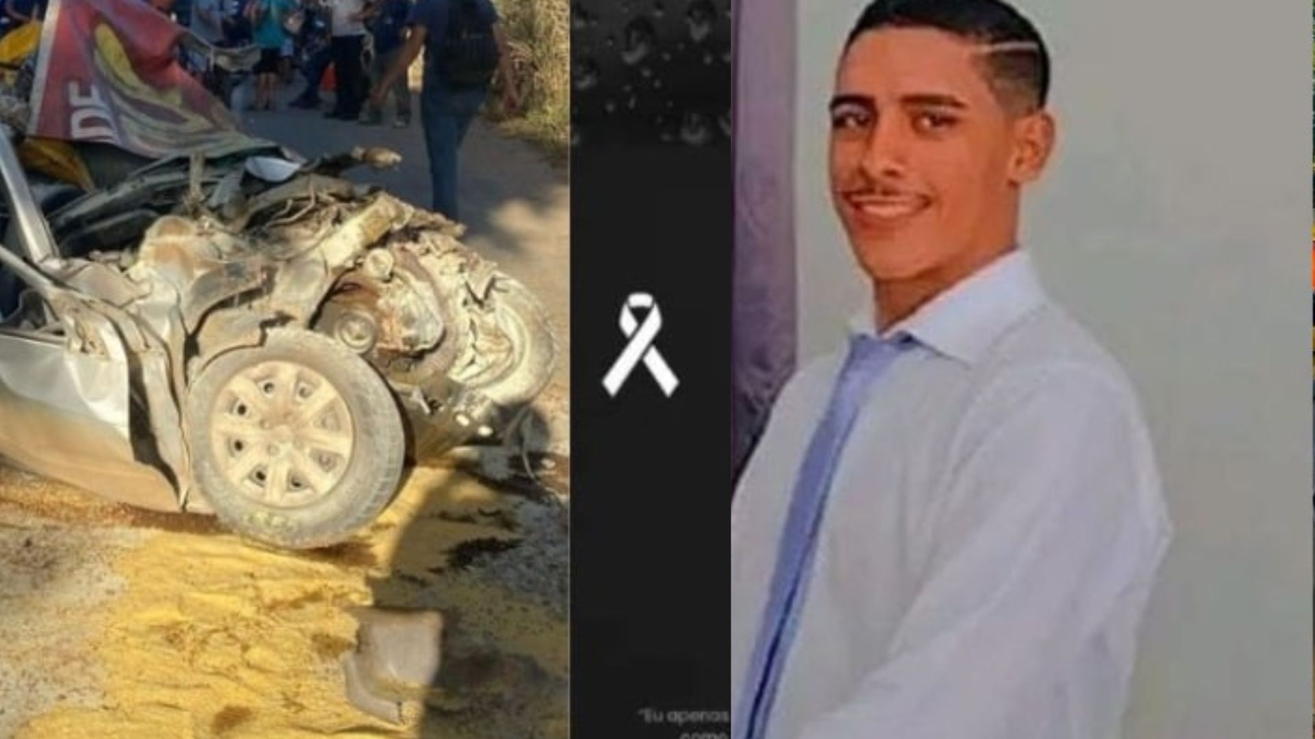 A colisão aconteceu na tarde de terça-feira (18) e envolveu uma motocicleta, uma caminhonete VW Saveiro e um caminhão. O impacto foi tão forte que Kerlon ficou preso às ferragens e morreu no local.