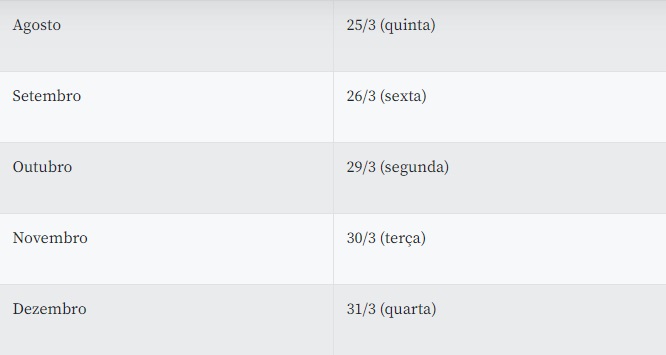 Confira o cronograma completo abaixo: