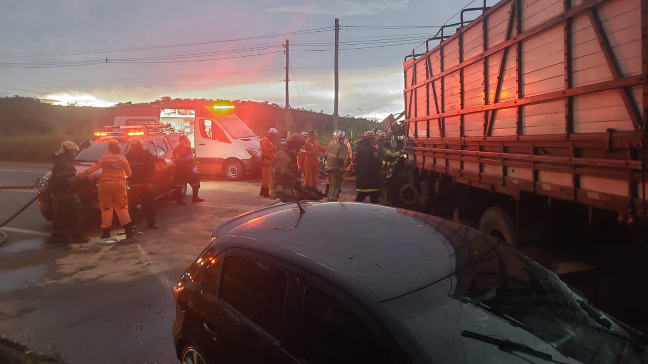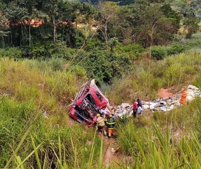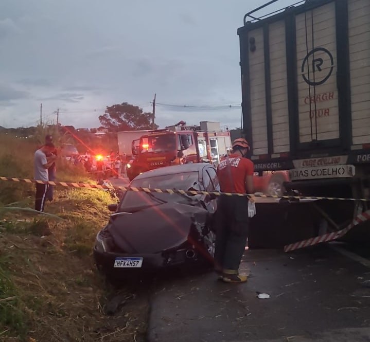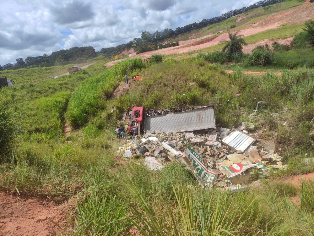 Segundo o Corpo de Bombeiros, um caminhão capotou e, das duas vítimas, uma ficou presa às ferragens e a outra foi ejetada do veículo. As equipes de resgate trabalharam para liberar as vítimas.