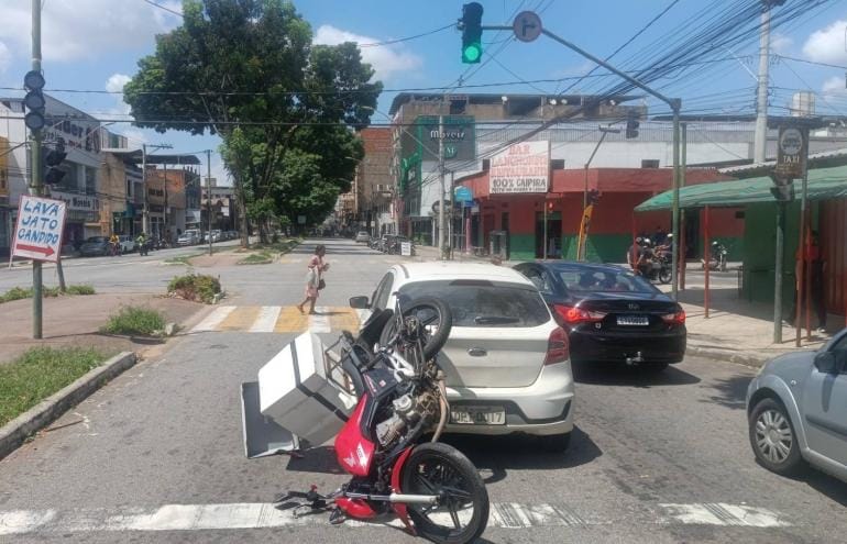 De acordo com o boletim de ocorrência, o condutor do Ford Ka, C.A.M.G., relatou que ao aproximar-se do semáforo, com a luz sinalizando para amarelo, percebeu que não conseguiria passar a tempo e freou o veículo, momento em que a motocicleta, conduzida por S.R.R.L., colidiu na traseira de seu carro, no lado esquerdo. O motorista aguardou a chegada da polícia no local.