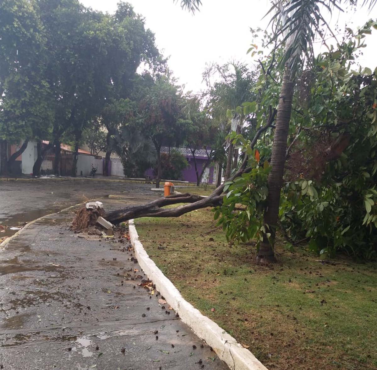 Já na rua Fernão Dias, bairro Vera Cruz, uma moradora filmou o momento exato em que toda a estrutura de um telhado de um prédio arrancou por inteiro, caindo sobre uma residência vizinha. A princípio ninguém se feriu, mas o susto foi enorme para os moradores locais.