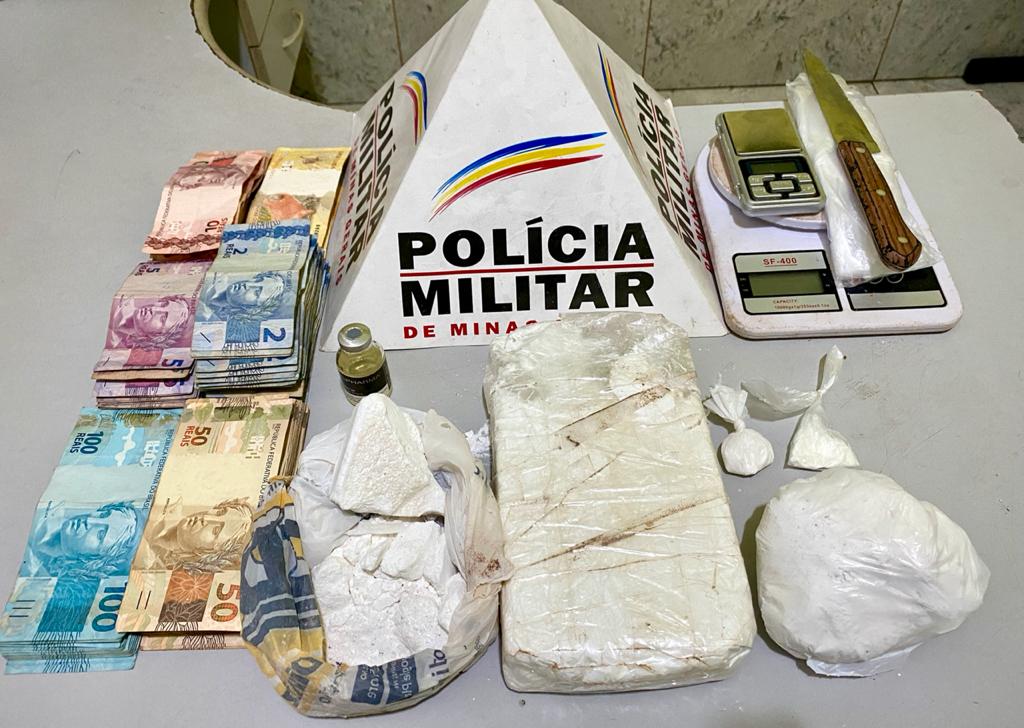 Ao todo, na operação, os policiais apreenderam uma barra de cocaína, pesando aproximadamente 1kg, duas porções maiores e duas porções menores de cocaína, duas balanças de precisão, uma faca, um frasco de stanozolol, um celular, R$ 6.235 e várias sacolas plásticas.