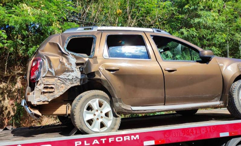 Ainda segundo o boletim, o motociclista, M.P.S., contou que seguia pela mesma rua, quando percebeu o problema do automóvel à sua frente. Ele parou a motocicleta na borda da via, mas o Renault/Duster desceu de ré descontroladamente em sua direção. Para evitar ser atropelado, M.P.S. saltou da motocicleta, sofrendo escoriações nos membros inferiores e superiores ao cair na via pública. A motocicleta foi atingida pelo carro e arrastada até o muro da residência.