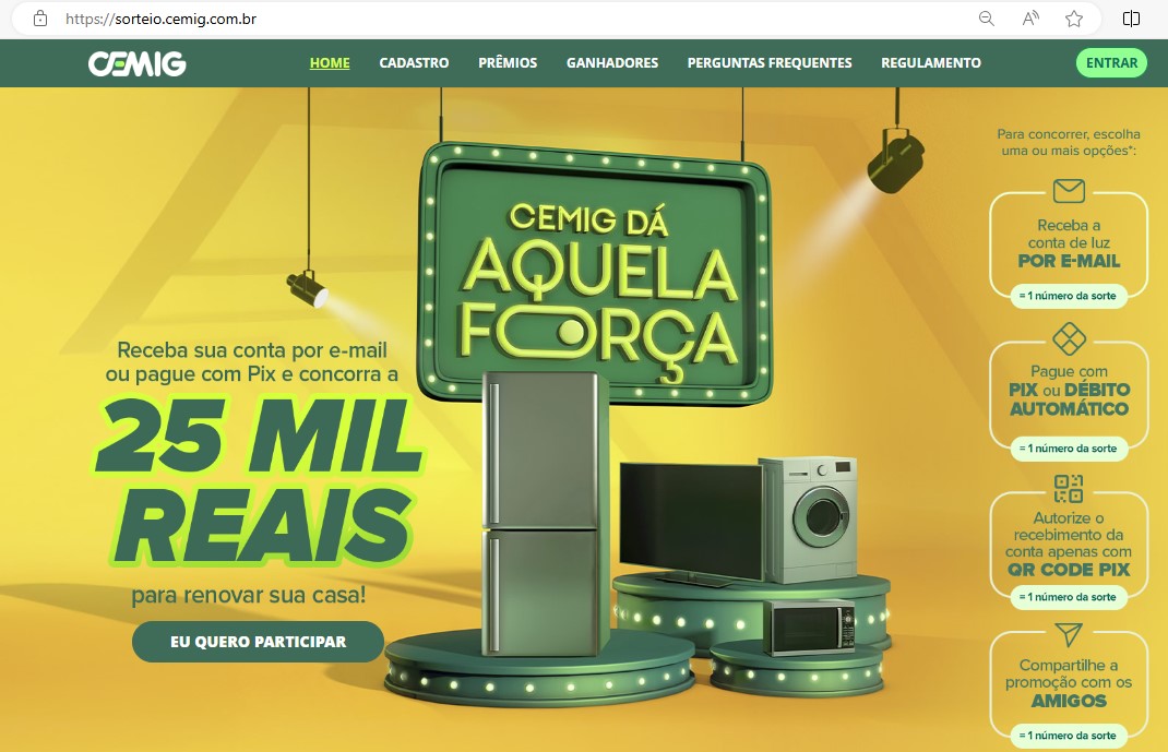 De acordo com Wellington Cancian, gerente de Recuperação de Receita da Cemig, a promoção é válida no estado de Minas Gerais, sendo permitida a participação de todos os consumidores atendidos em baixa tensão que preencherem as condições de participação estabelecidas no regulamento, sendo pessoa física (titular da conta), maior de 18 anos, residente e domiciliado no estado de Minas Gerais ou consumidores pessoa jurídica (titular da conta), exceto administração pública direta ou indireta.