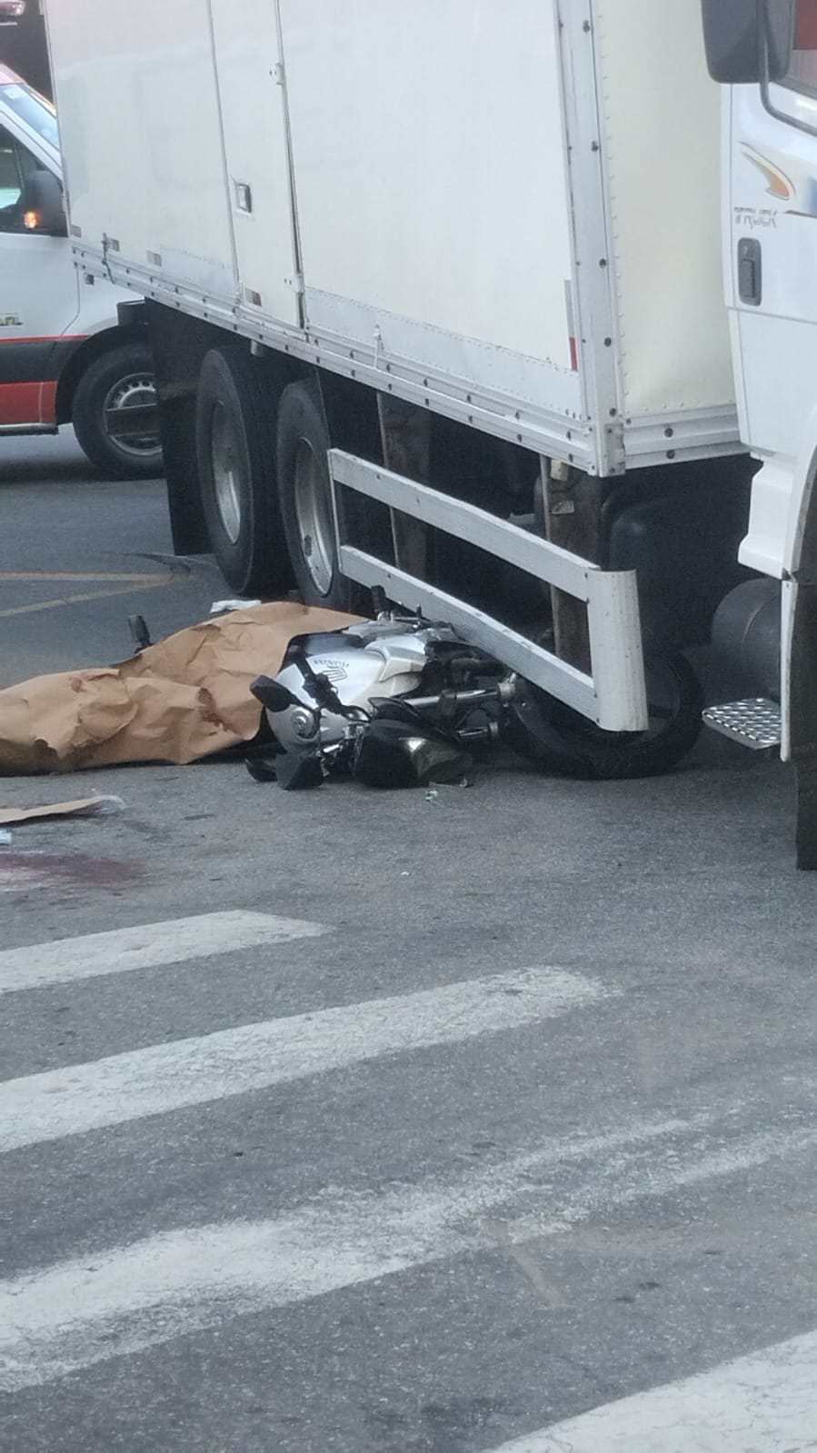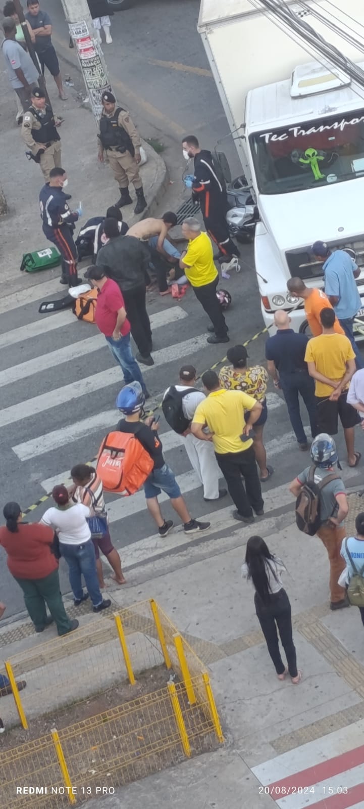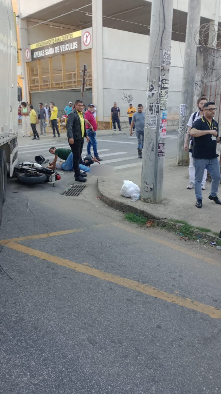 De acordo com uma testemunha, o motociclista não conseguiu evitar a batida, resultando na queda da moto e no acidente que deixou a mulher gravemente ferida. Com a colisão, a vítima teve um de seus pés esmagado pelo caminhão, o que gerou comoção entre os populares que passavam pelo local.