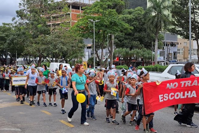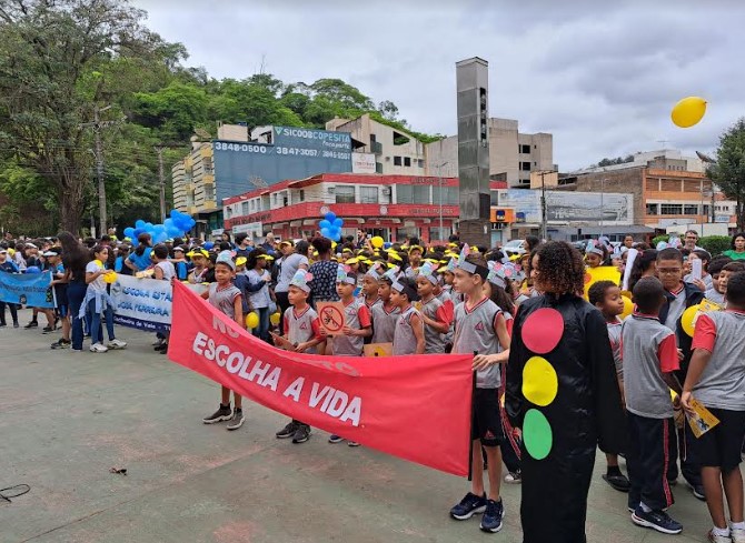 Mais de 600 estudantes e educadores do 4º ano do Ensino Fundamental das escolas públicas e particulares de Timóteo participaram da passeata, na manhã desta terça-feira (19/9), na Praça 1º de maio, para marcar a Semana Nacional de Trânsito, celebrada em todo o país de 18 e 25 de setembro, conforme disposto no Código de Trânsito Brasileiro. Com o tema “No trânsito, escolha a vida”, o objetivo da ação foi mobilizar a sociedade em busca de uma cultura de segurança no trânsito mais sólida e consistente.