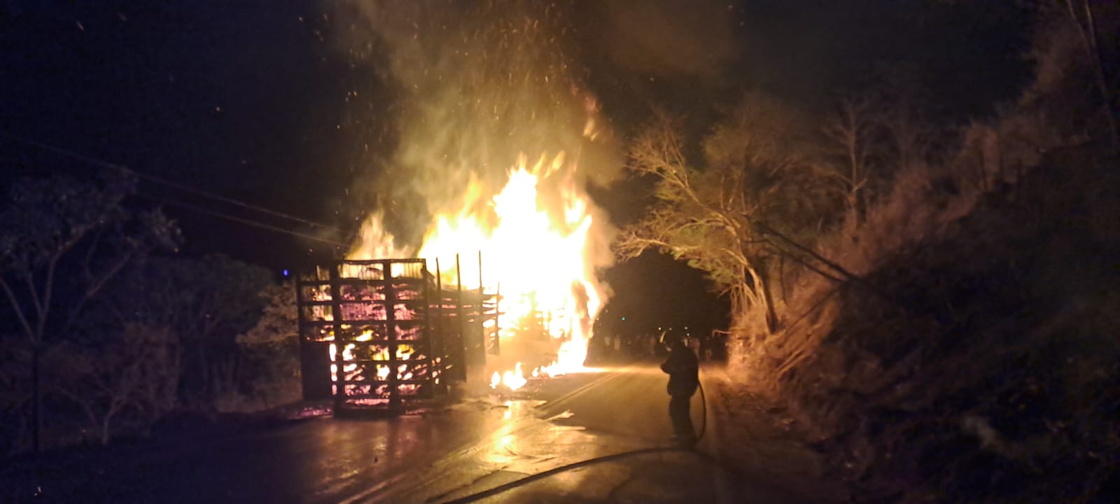 Um incêndio de grandes proporções destruiu uma carreta tritrem da empresa Expresso Nepomuceno, que transportava toras de eucalipto para a empresa Cenibra, na manhã desta quinta-feira (20), na rodovia LMG 758, zona rural de Açucena. A ocorrência foi atendida pelo Corpo de Bombeiros, que utilizou cerca de 18 mil litros de água para controlar as chamas e impedir a propagação para a vegetação próxima.