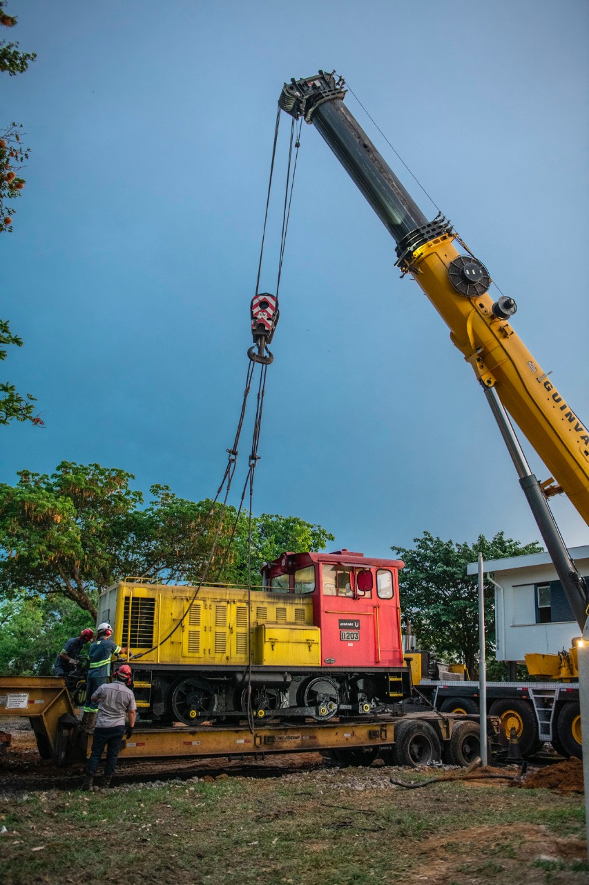 Desativado em 1990, o veículo, com capacidade para suportar 20 toneladas foi usado no primeiro transporte de ferro gusa, durante as operações da Usiminas. A locomotiva foi instalada no jardim e faz parte do projeto expográfico do Centro de Memória.