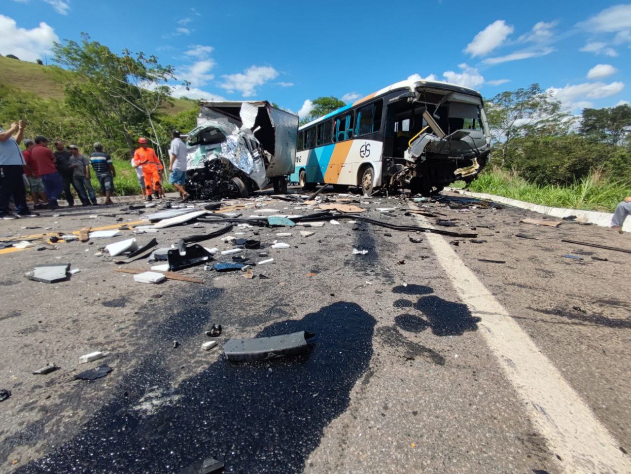 Caminhão teria invadido a contramão para realizar ultrapassagem e colidiu com o ônibus