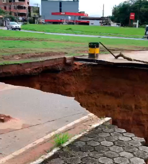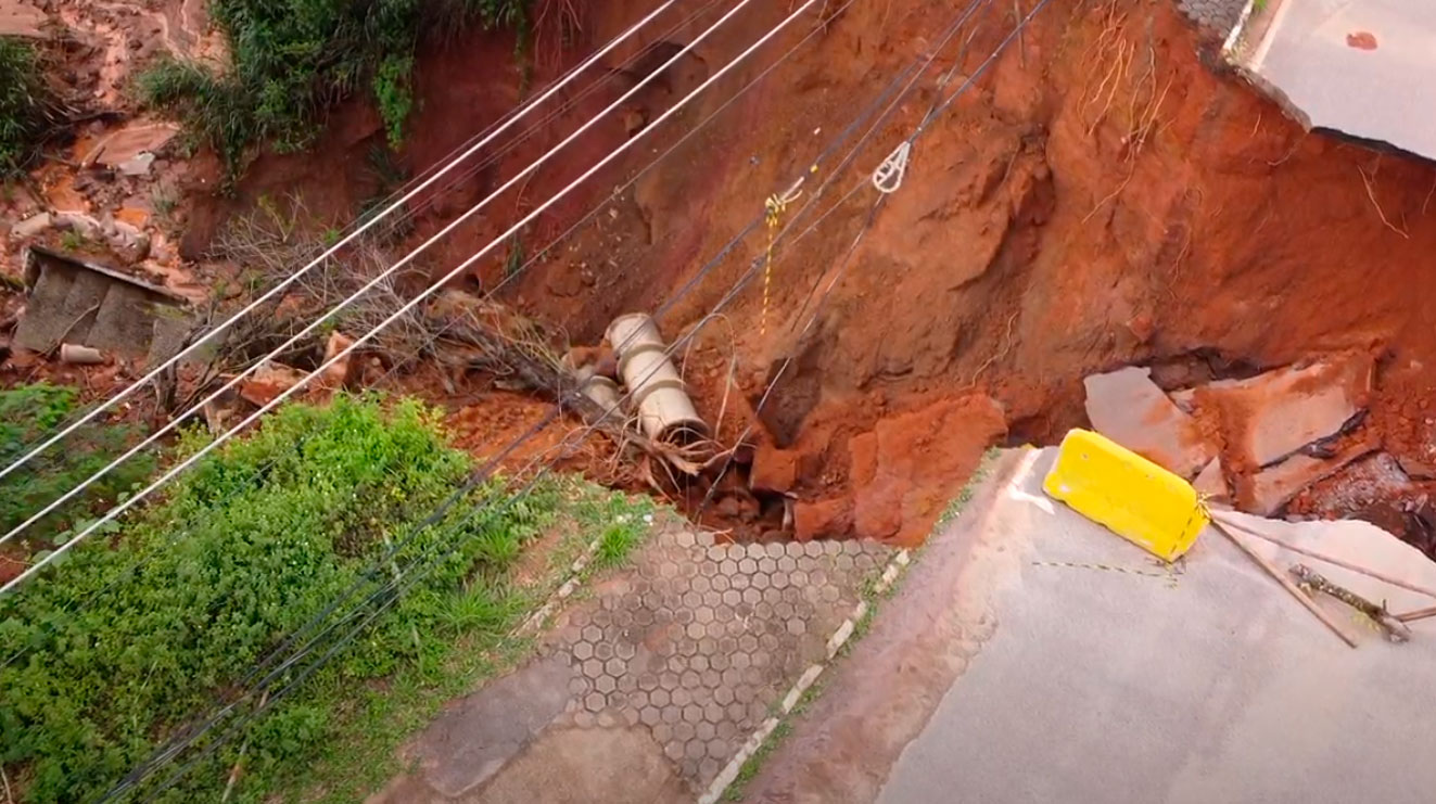 Segundo a Prefeitura, a erosão aumentou, pois, além da chuva, a drenagem de água que desce do bairro Serenata, próximo da erosão, deságua exatamente no local em que está situada a cratera.