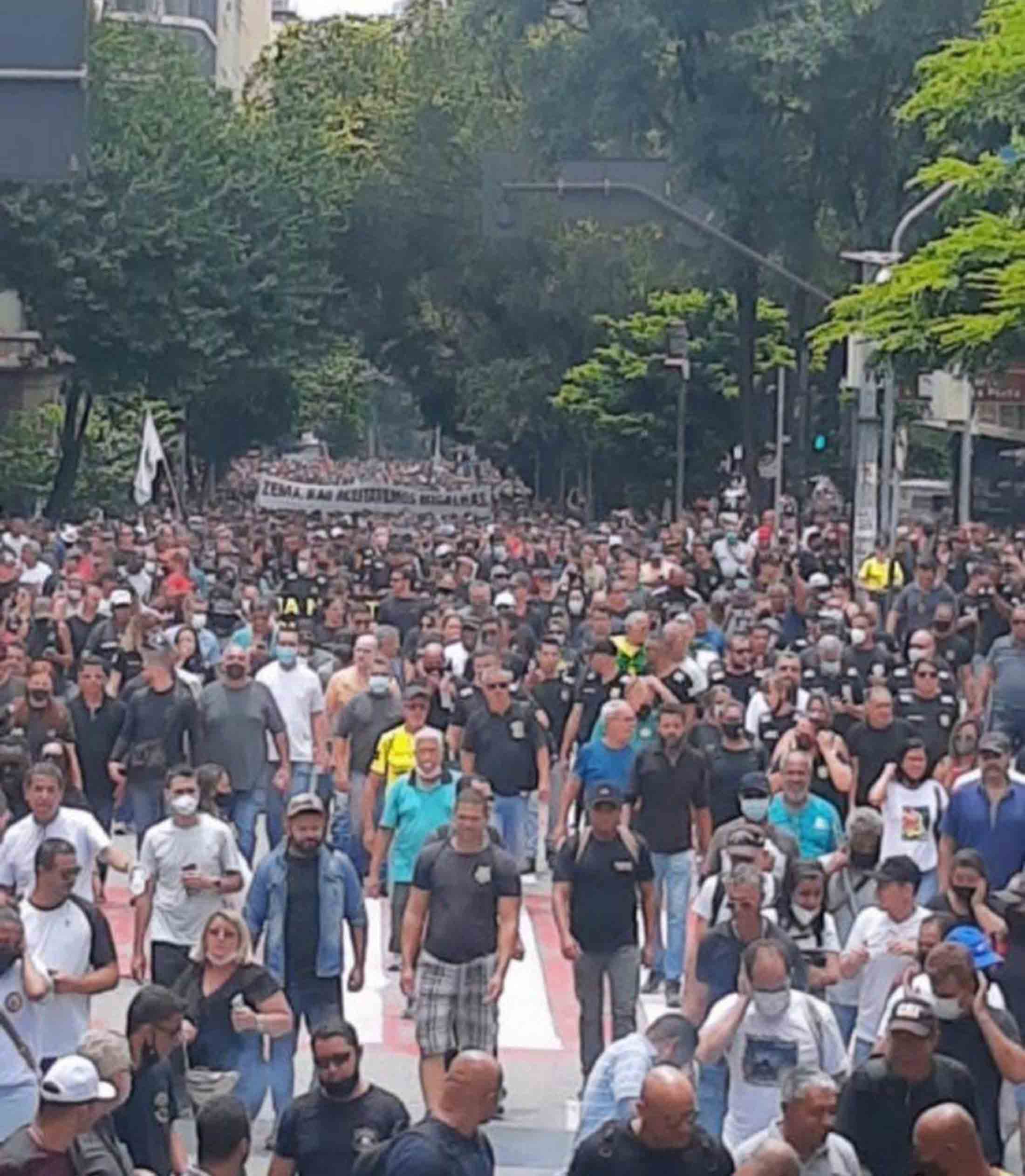Servidores da segurança de Minas Gerais se reuniram e protestaram contra o governador Romeu Zema (Novo), nesta segunda-feira (21), na capital mineira Belo Horizonte. O intuito do protesto é o pagamento da recomposição salarial de policiais penais, militares, civis e agentes socioeducativos.