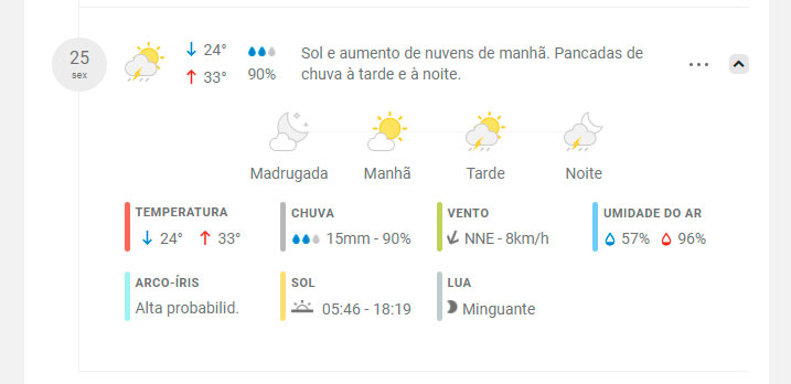 Já na sexta (25), a previsão é parecida com a quinta-feira. Veja: