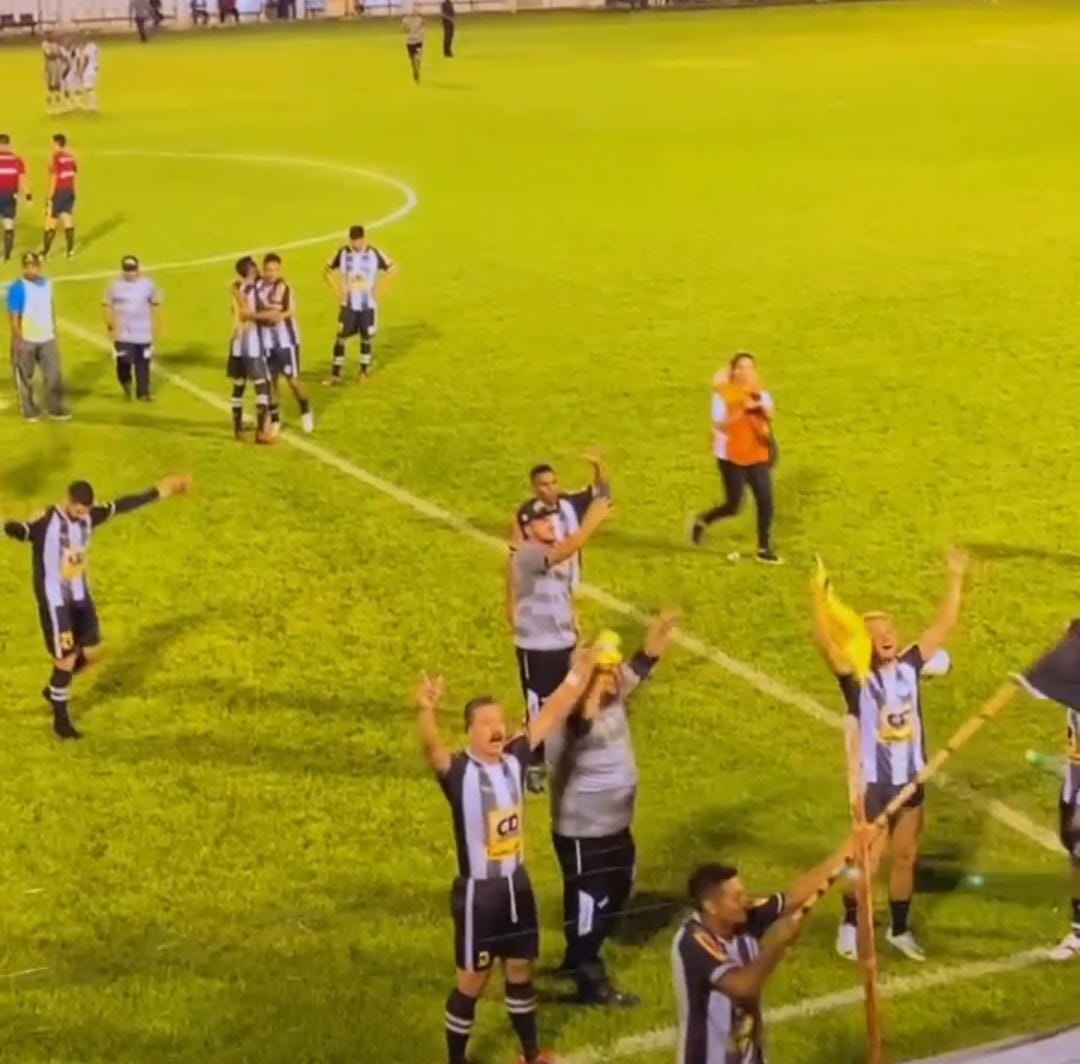 Jogadores do Democrata comemorando a vitória com a torcida. Foto: reprodução