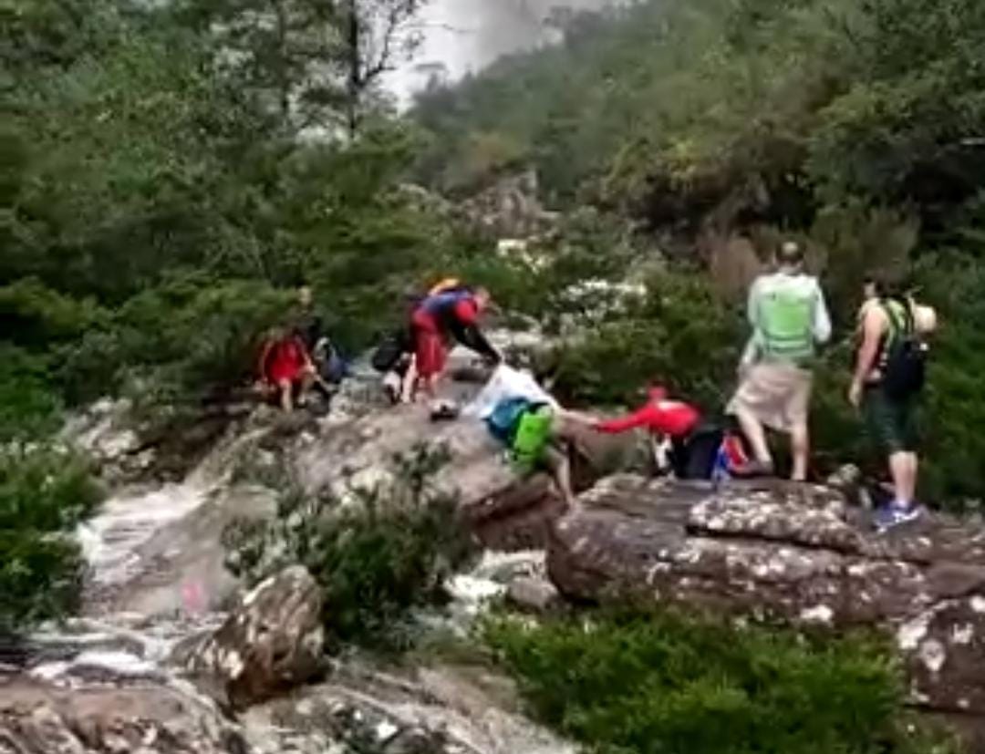 Dos nove turistas, cinco foram resgatados pelos bombeiros. Três crianças e dois adultos foram transportados de helicóptero pela aeronave Arcanjo até um local seguro, após pousar em um heliponto próximo. As outras quatro pessoas foram conduzidas por terra pelos bombeiros, com o apoio de guias do parque que conheciam bem as trilhas da região.