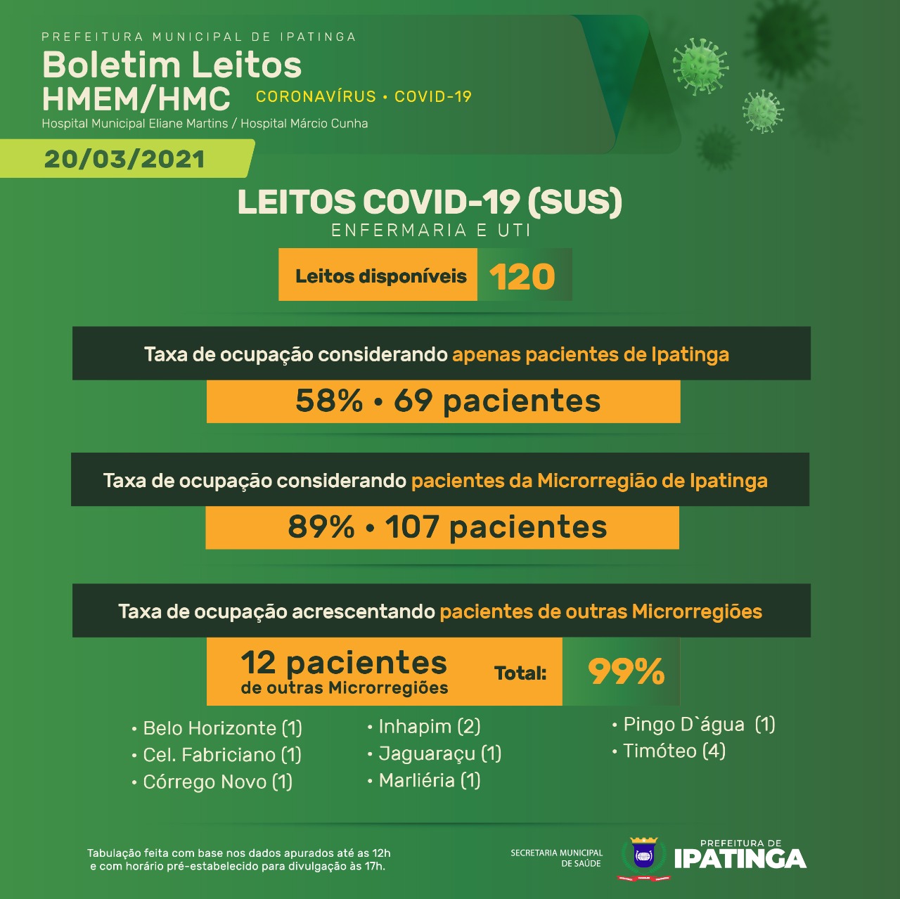 Ao todo, o município de Ipatinga está com 96% de ocupação dos leitos de UTI Covid e não Covid.