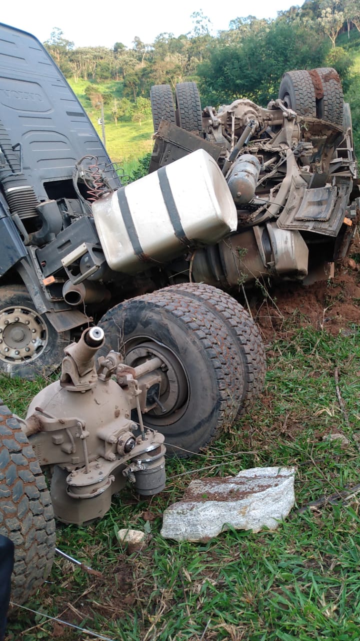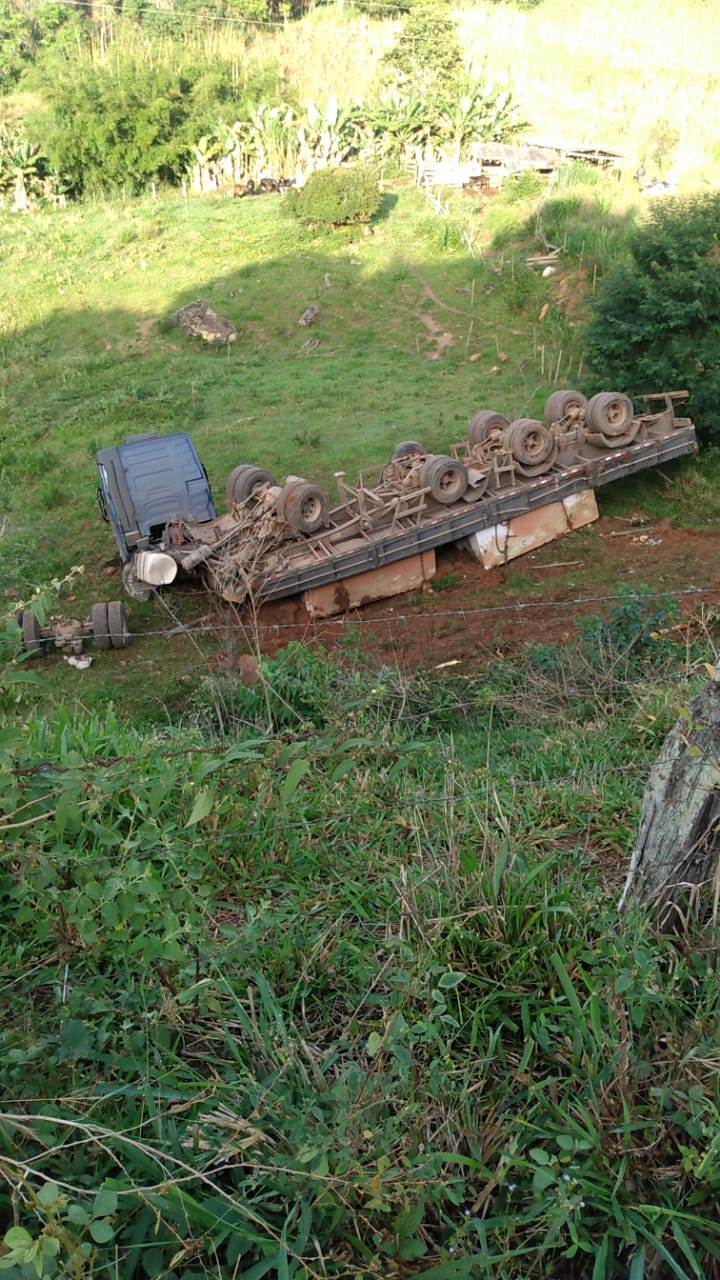 Uma carreta carregada de granito caiu em uma ribanceira na madrugada desta quarta-feira (21), na rodovia MGC 259, região conhecida Serra do Urucum, em Coroaci-MG, no Leste de Minas Gerais.