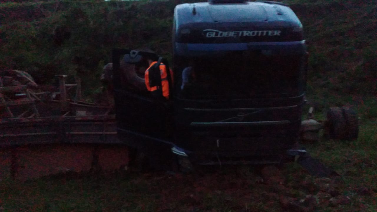 De acordo com as informações repassadas pelo motorista, ele perdeu o controle da carreta na descida e acabou caindo em uma ribanceira de aproximadamente 30 metros. A carreta transportava duas pedras de granito, com peso total de 84 toneladas.