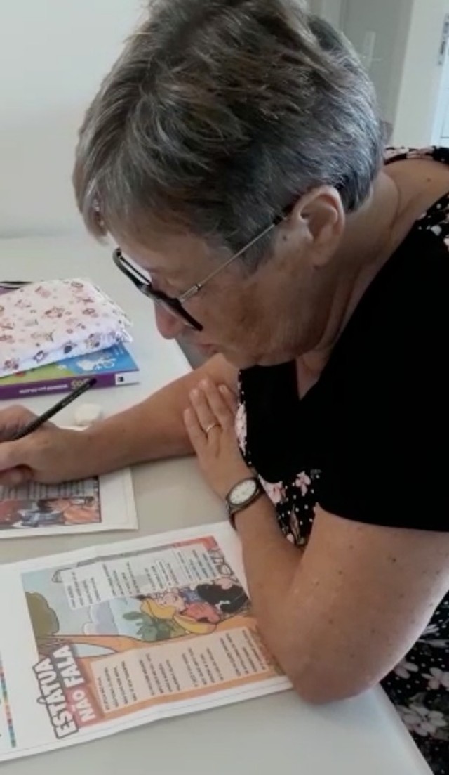 Se temos a opinião de que a pandemia está demorando muito tempo para passar - e olha que ela tem mais do que um ano - a catarinense precisou chegar à velhice para iniciar a leitura das primeiras palavras. Sem querer perder tempo, já que já havia esperado demais, Marlene aproveitava as idas que todo dia sua filha e seu neto de sete anos faziam à sua casa em 2020 e se aventurava, aos 63 anos de idade, a assistir às aulas virtuais da criança, que estava se alfabetizando.