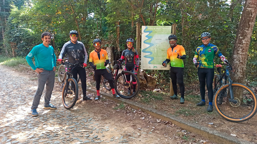 Para iniciar o projeto de estruturação das trilhas para o cicloturismo, foi escolhida a trilha do Angico Vermelho, que possui 1,5 quilômetro, fácil acesso, menor volume de visitação e topografia suave. Neste mês, representantes de grupos de ciclistas foram convidados a fazer o percurso para reconhecimento e sugestões de adaptações necessárias.