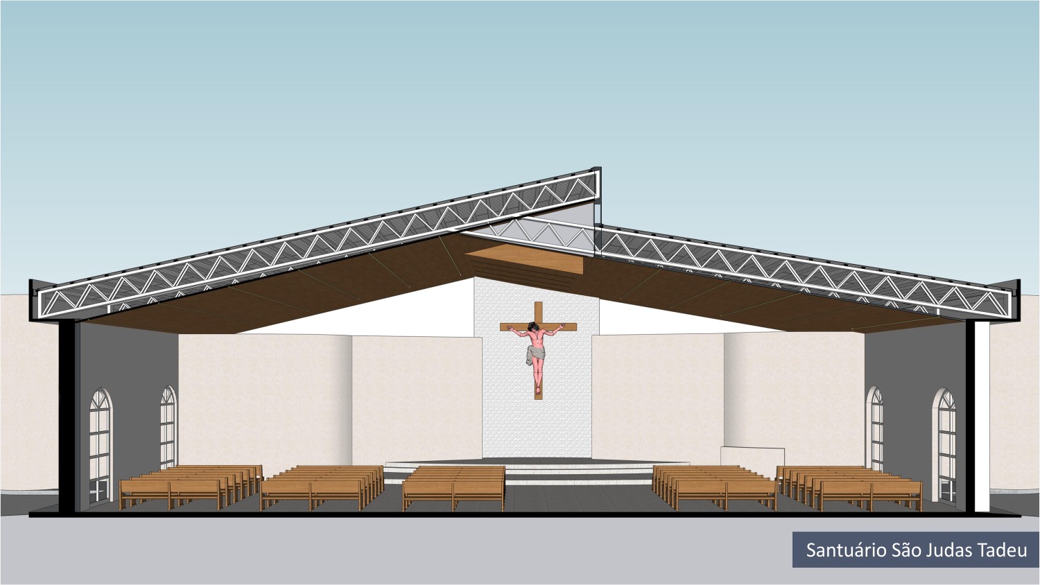 Os projetos das colunas e estruturas metálicas para o telhado do santuário estão prontos e já entraram em fase de entendimento com os fornecedores, passo essencial para assegurar que todos os materiais e processos atendam às especificações e padrões de qualidade exigidos.