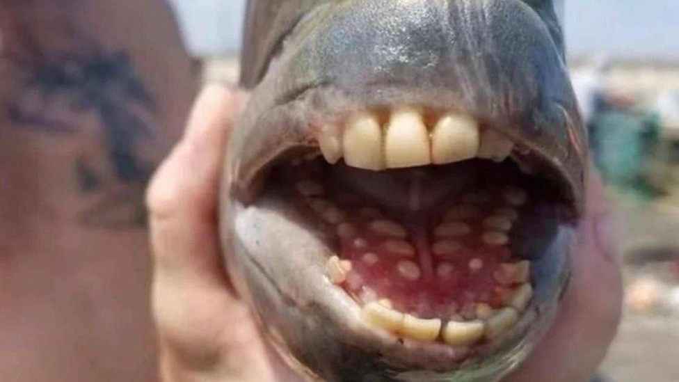 Peixe da espécie sargo-de-dentes foi preparado para refeição e causou espanto por sua aparência incomum.