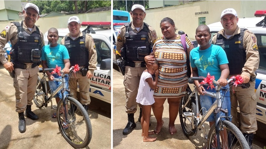 Policiais sensibilizados agem rapidamente para ajudar criança que teve bicicleta furtada no bairro Cidade Nobre