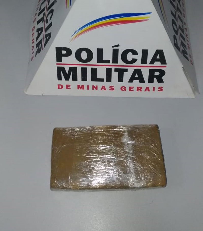 De acordo com a PM, durante busca pessoal aos indivíduos, foi localizado pelos militares uma barra de maconha prensada.