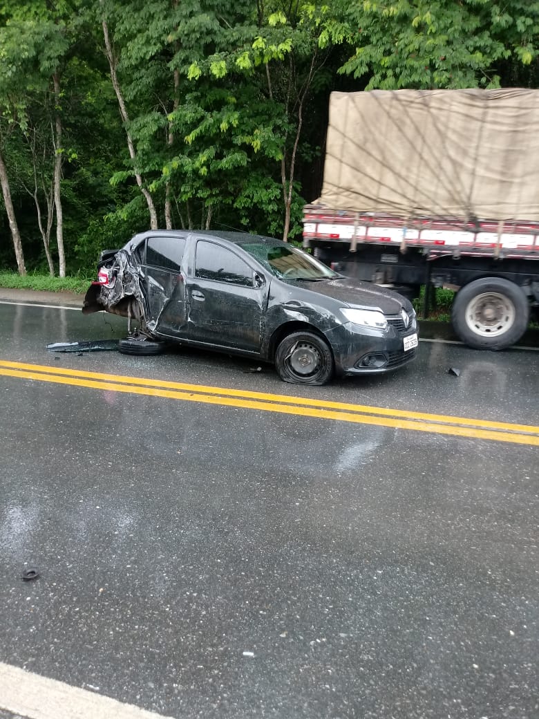 Acidente sob chuva envolveu caminhão e carro onde estavam Maria dos Anjos Gonçalves, 51, e o neto Pedro Rodrigues Oliveira, 12
