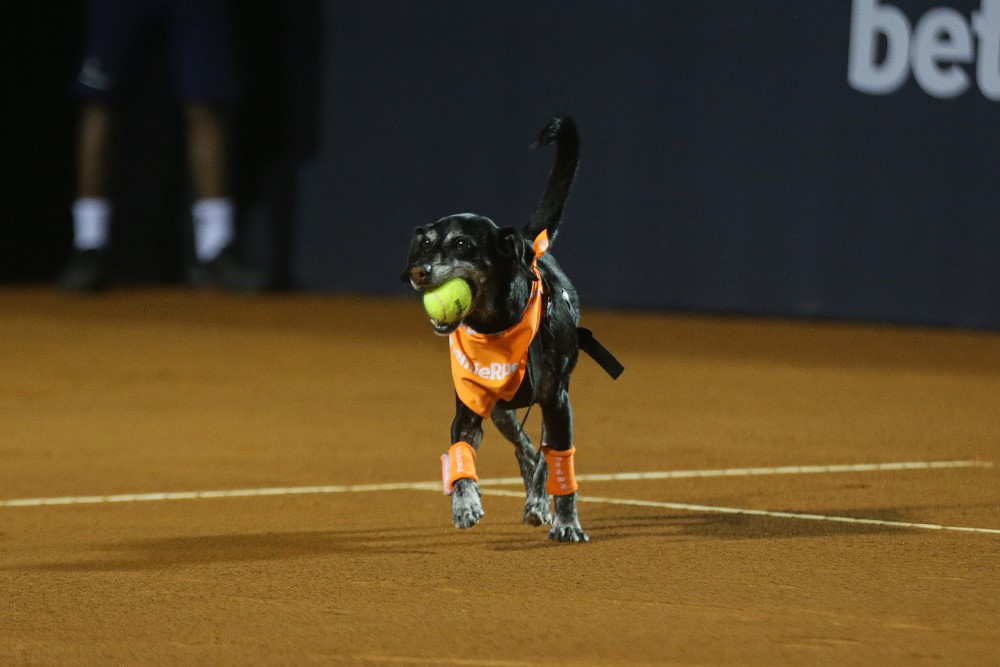 Brincar com cachorro jogando uma bolinha é uma das diversões favoritas deles, que correm, pulam e demonstram enorme felicidade. Imagina fazer isso no maior torneio de tênis da América Latina? Pois é, aconteceu no Rio Open.