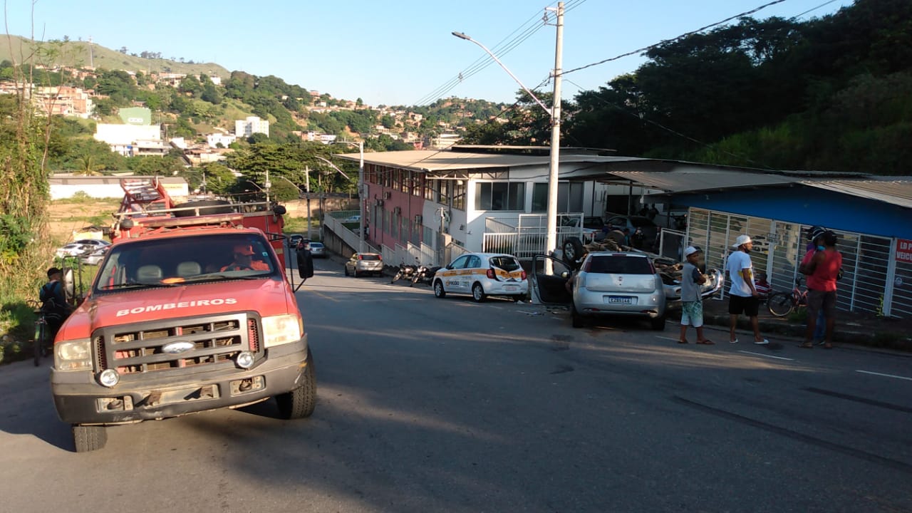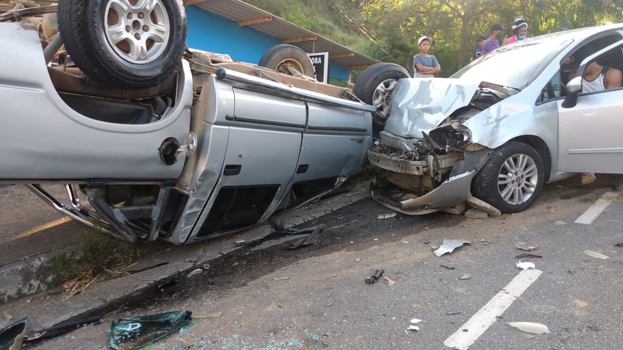 Passageiro fica ferido após carro de aplicativo bater em caminhonete que capotou em Fabriciano