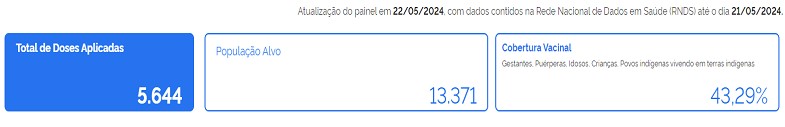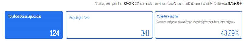 Após dois meses do início da vacinação contra a gripe em Ipatinga, 43,29% das pessoas dos grupos prioritários foram vacinadas, sendo que a meta é atingir 90%. Somando o número de crianças, grávidas, puérperas e idosos, 24.917 foram vacinados até essa quarta-feira (21), segundo a secretaria municipal de Saúde. No total, 43.312 pessoas foram vacinadas, incluindo os outros grupos e população geral (18.395). Nesta semana, o Senado aprovou a vacinação de crianças em escolas públicas para aumentar a cobertura vacinal no país. Veja os detalhes sobre a vacinação de cada grupo em Ipatinga e sobre o projeto que vai à sanção presidencial na Live.