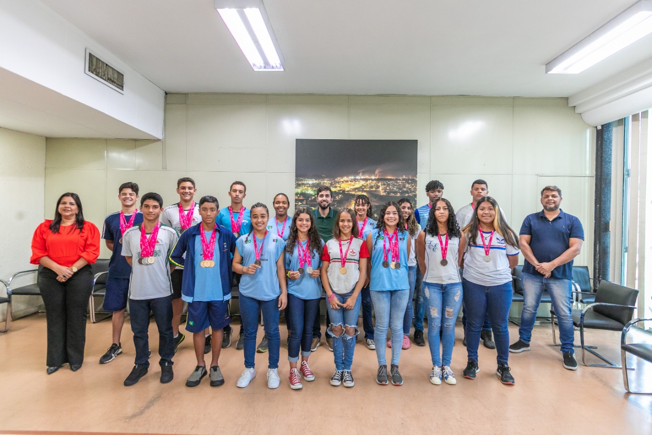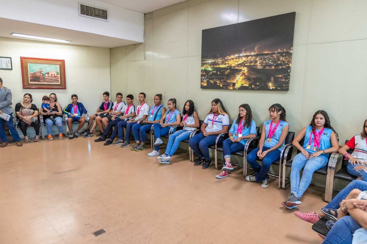 O prefeito Gustavo Nunes recepcionou nesta segunda-feira (22), na sala de reuniões de seu gabinete, um grupo de atletas ipatinguenses que se destacaram na etapa estadual dos Jogos Escolares de Minas Gerais (JEMG), conquistando um total de 40 medalhas nas competições realizadas em Uberaba. Os alunos de escolas municipais, estaduais e particulares de Ipatinga, contaram com todo apoio da administração da cidade, por meio da Secretaria Municipal de Cultura, Esporte e Lazer (Semcel) e Secretaria Municipal de Educação.