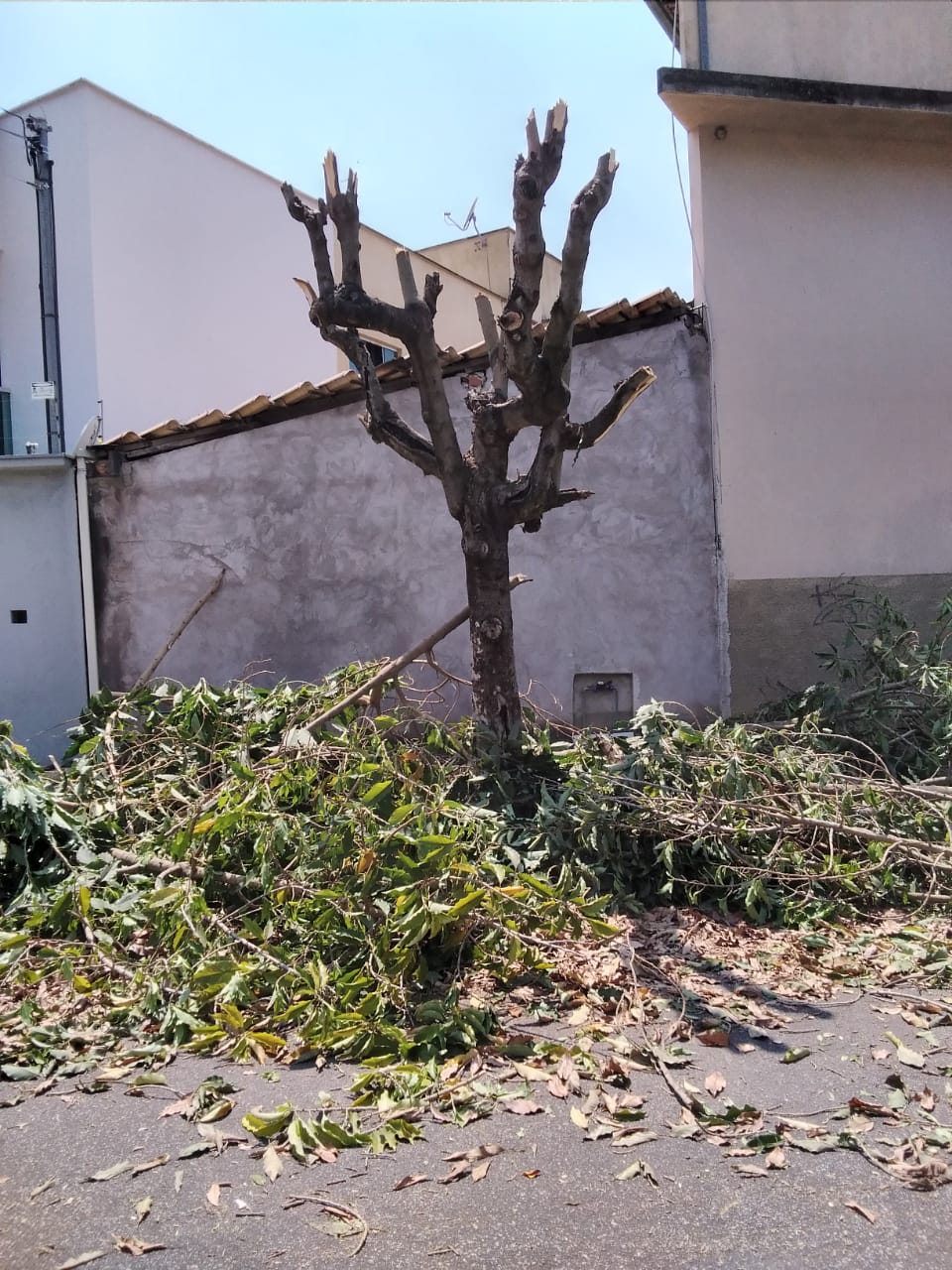 Após a poda, as galhadas e demais resíduos vegetais foram abandonados na via pública e o setor de Limpeza Urbana foi acionado pelos próprios moradores. Agentes da Fiscalização Ambiental estiveram no local e se depararam com a omissão das pessoas em assumir a autoria da poda ou em apontar as pessoas envolvidas.