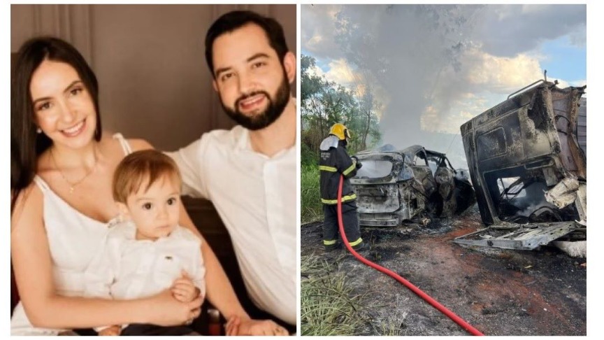 Veículo invade contramão, colide com caminhão e incendeia, deixando família carbonizada na região Centro-Oeste de Minas Gerais.