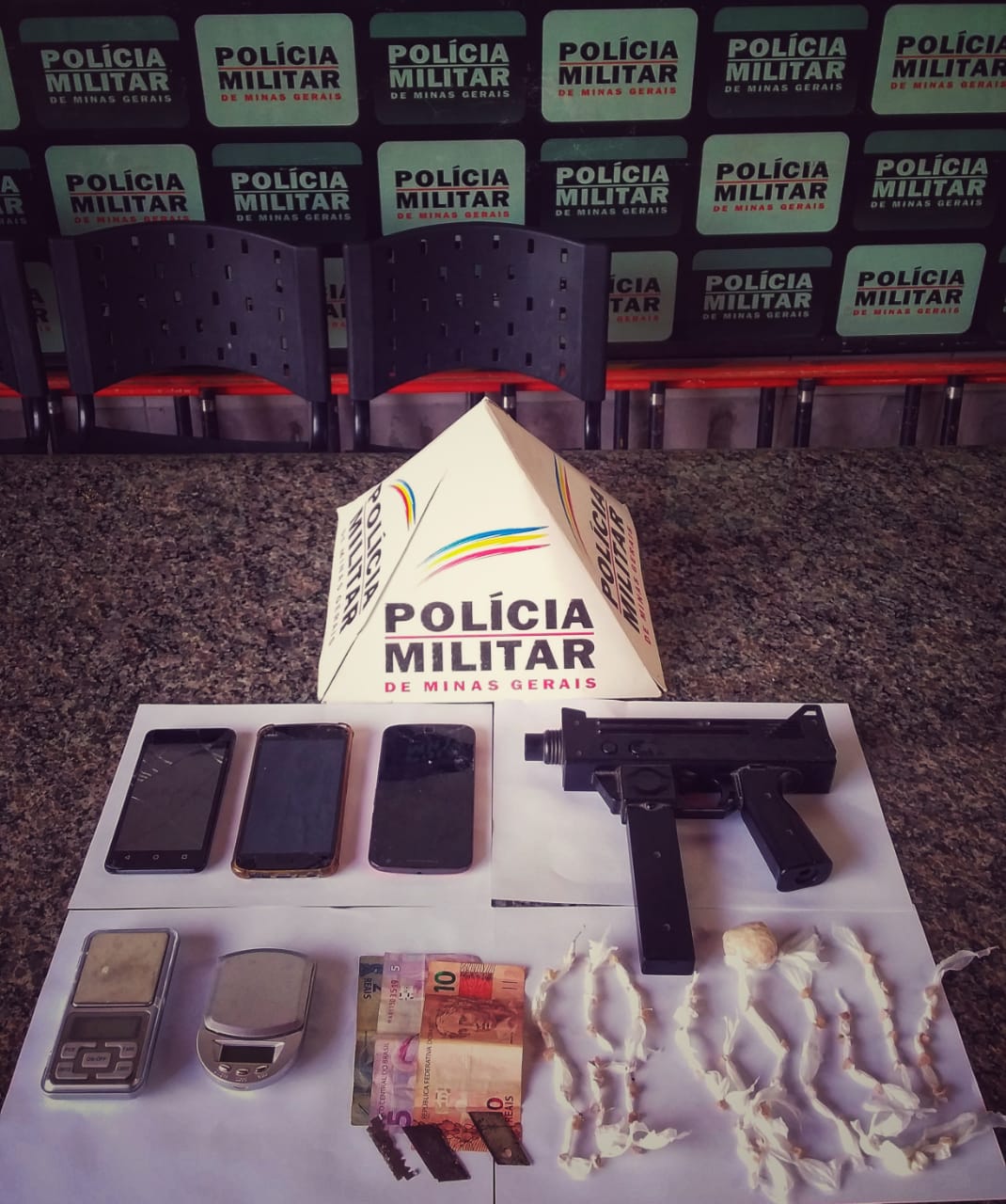 Na tarde dessa segunda-feira (22), a Polícia Militar apreendeu um simulacro de submetralhadora e drogas que estavam sob a posse de dois jovens, um de 19 e o outro de 23 anos. O fato aconteceu por volta 15h30, na rua Carangola, bairro Olaria, em Coronel Fabriciano, Minas Gerais.