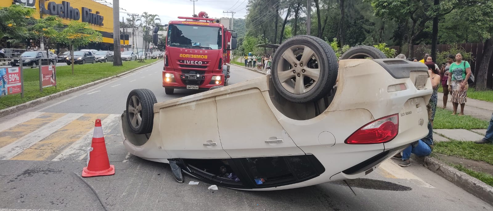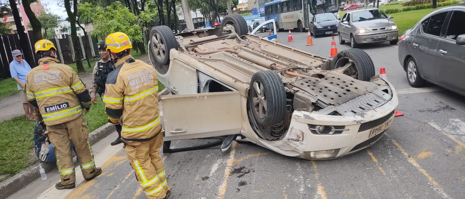 Um acidente na tarde desta sexta-feira (23) deixou um veículo capotado na Avenida Fernando de Noronha, no bairro Bom Retiro, em Ipatinga, Minas Gerais.