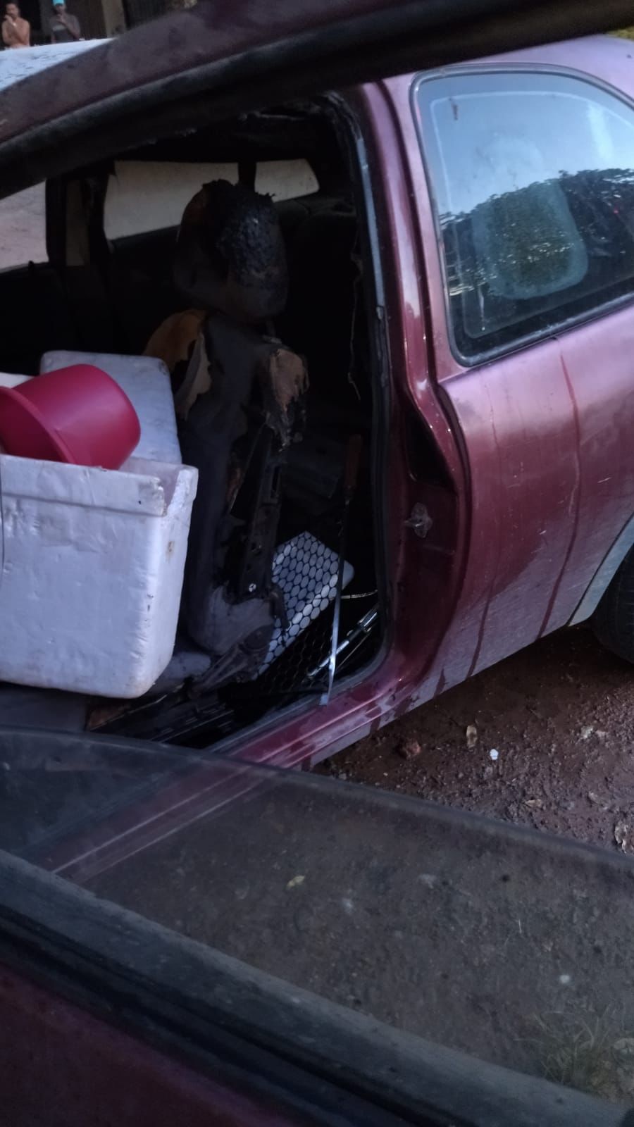 O veículo ficou com o interior totalmente queimado
