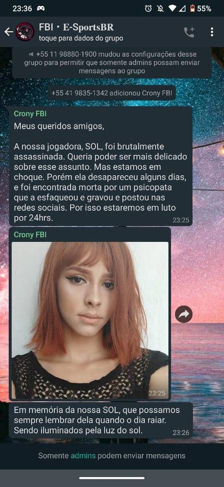 A vítima era Ingrid Oliveira Bueno da Silva, de 19 anos, conhecida por participar de jogos online. Segundo as informações, os dois se conheceram pela internet e a garota foi visitá-lo na casa dele. No local, ela foi atacada por diversos golpes de faca.